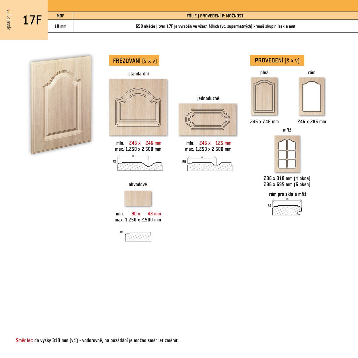 Tvar 17F je vyráběn ve všech fóliích (vč. supermatných) kromě skupiny lesk a mat.