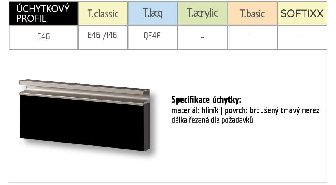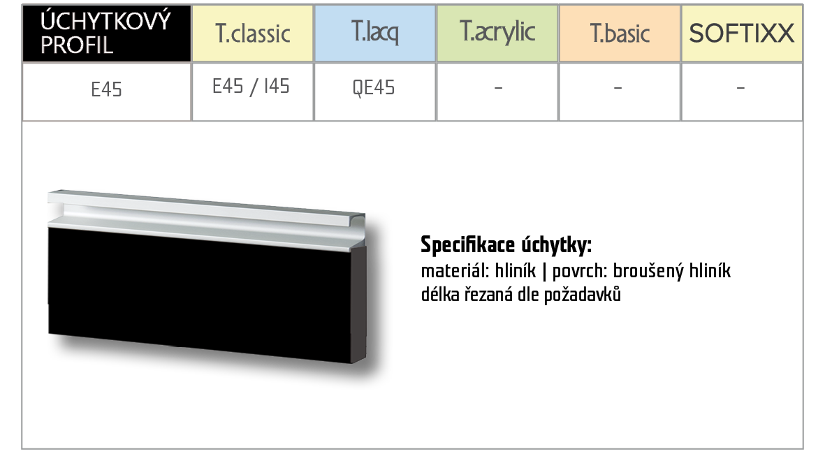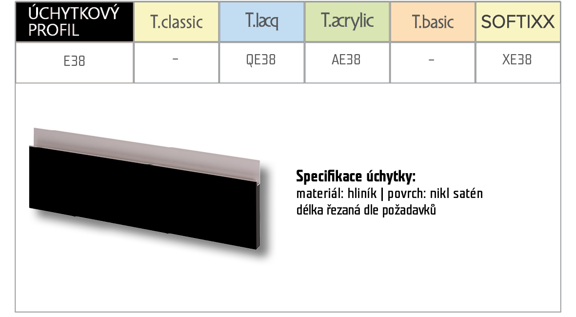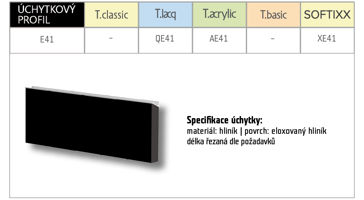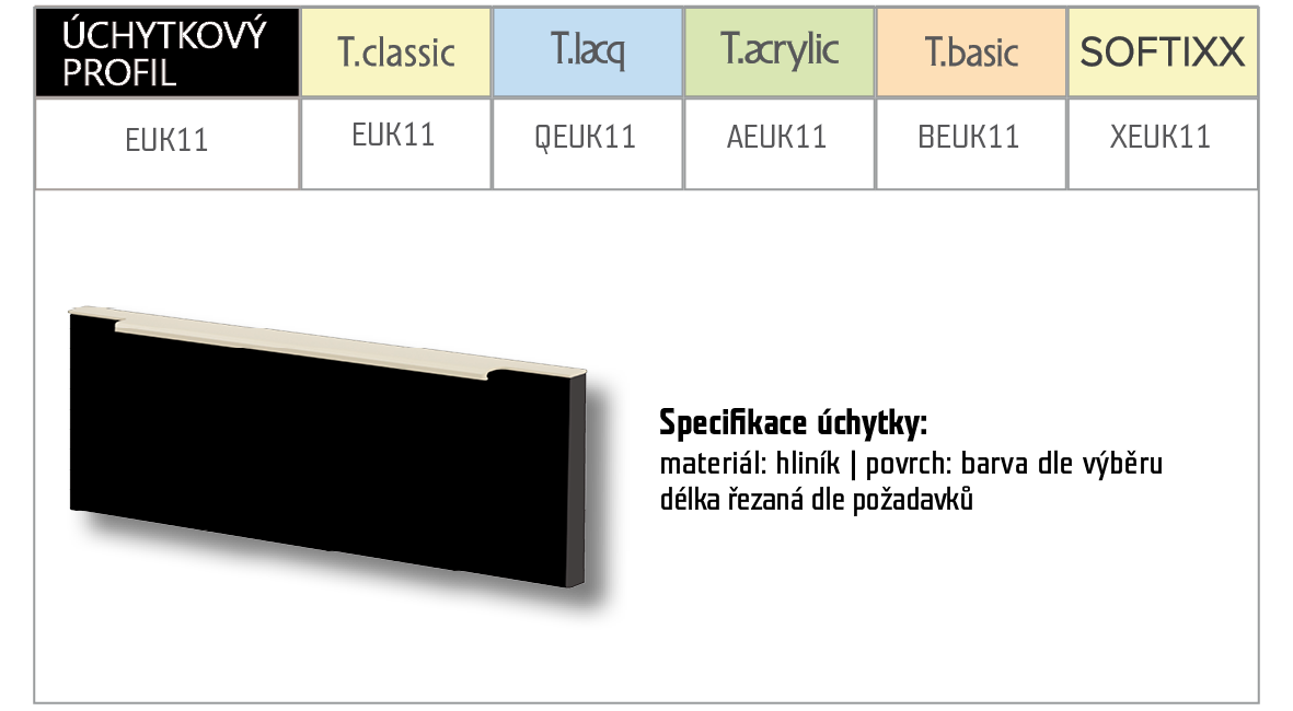 Úchytka EUK 11 v jedenácti volitelných odstínech RAL je v naší nabídce už dva roky. V poslední době se barevné úchytky těší pozornosti a přízni designérů i zákazníků, a proto jsme vybrali dalších 15 typů z naší nabídky, které lze řezat na požadované rozměry a komaxitovat do jednoho z 12 zmíněných odstínů v matném provedení.