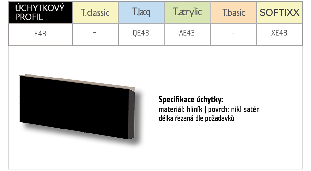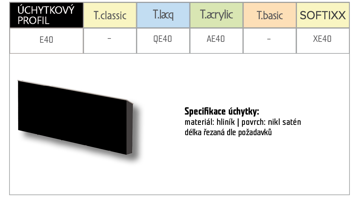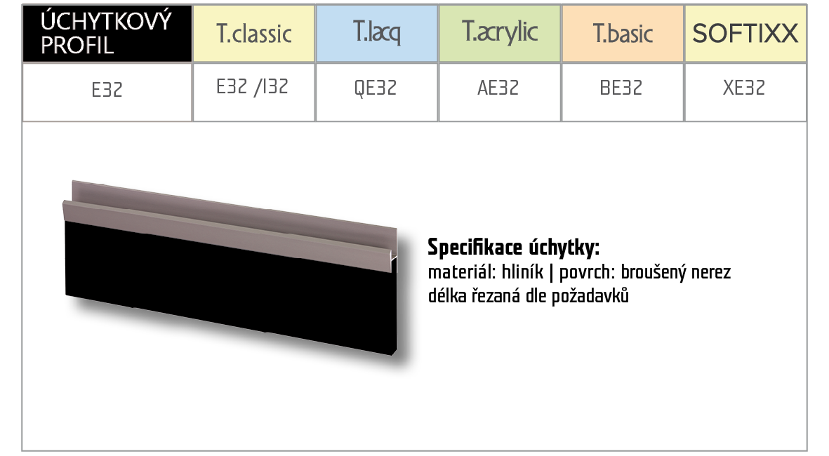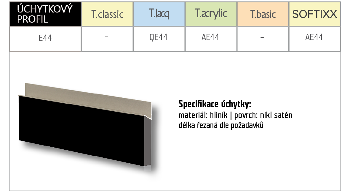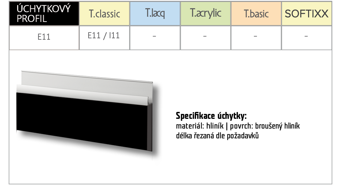 Úchytka EUK 11 v jedenácti volitelných odstínech RAL je v naší nabídce už dva roky. V poslední době se barevné úchytky těší pozornosti a přízni designérů i zákazníků, a proto jsme vybrali dalších 15 typů z naší nabídky, které lze řezat na požadované rozměry a komaxitovat do jednoho z 12 zmíněných odstínů v matném provedení.
