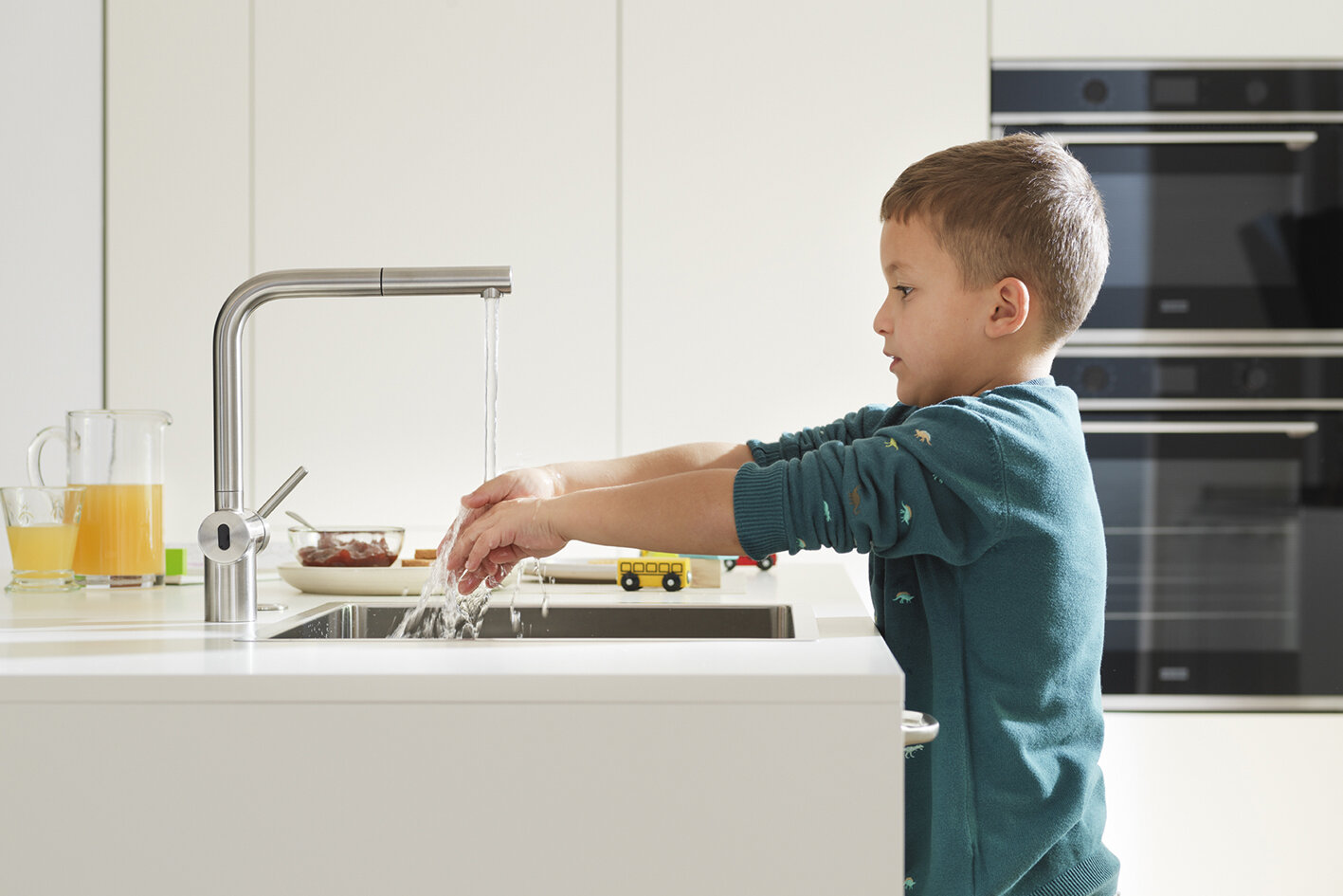 Při mytí rukou v kuchyni lze významně a přitom snadno snížit spotřebu. Zastavením vody při použití mýdla ušetříme nejméně 3 litry při každém mytí, čímž snížíme spotřebu o 50%.