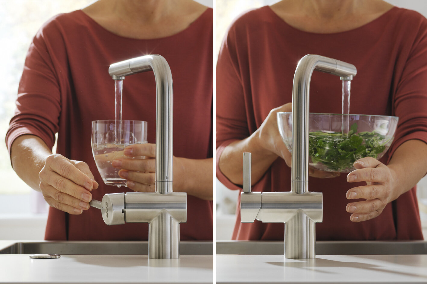 Zjistíte, že ovládání je snadné a intuitivní: senzor okamžitě reaguje na pohyb ruky ve vzdálenosti 5 – 10 cm a na jedno spuštění spotřebuje baterie cca 2,5 l vody, neboť po 30 sekundách se automaticky uzavře. Pro mytí velkých kusů nádobí je proto lepší použít standardní manuální ovládání.