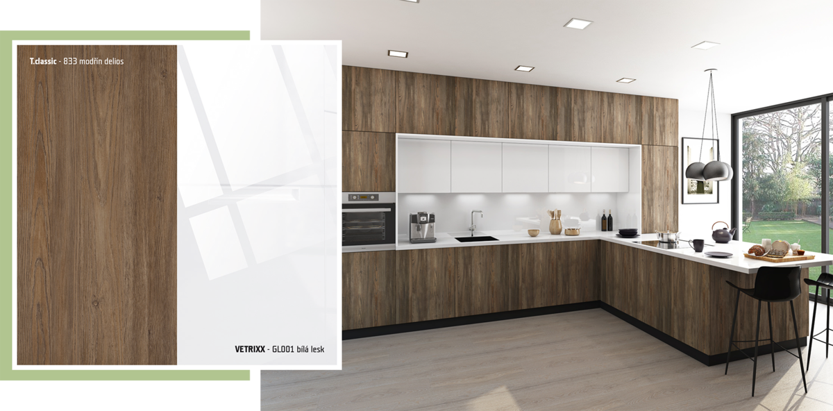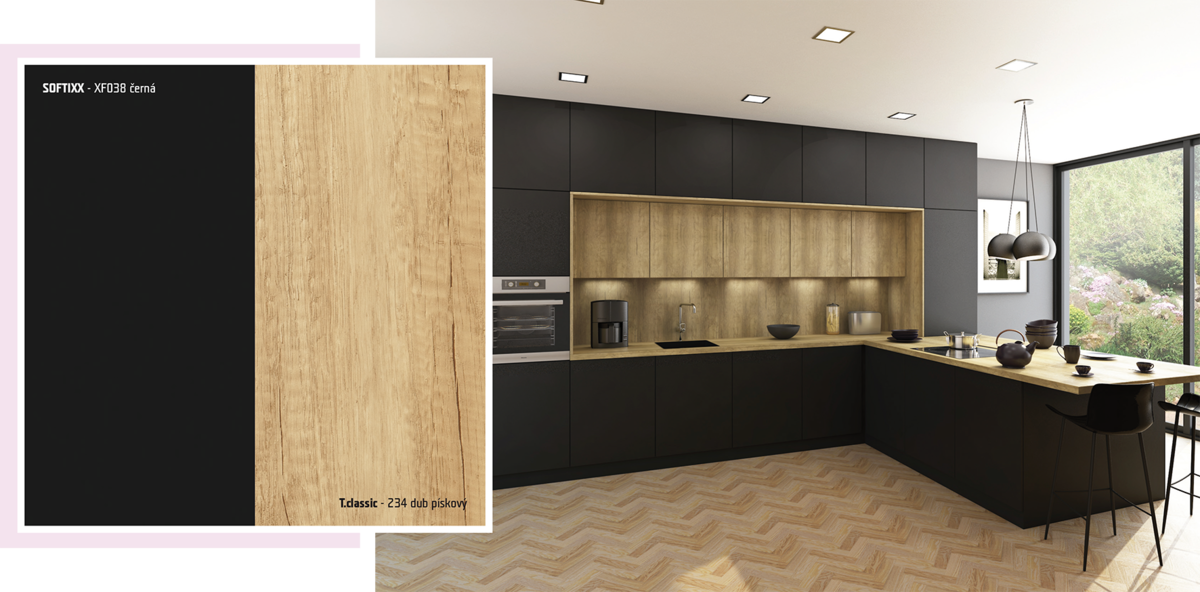 Kombinací s dekorem dubu vznikla kuchyně, která zůstane elegantní a