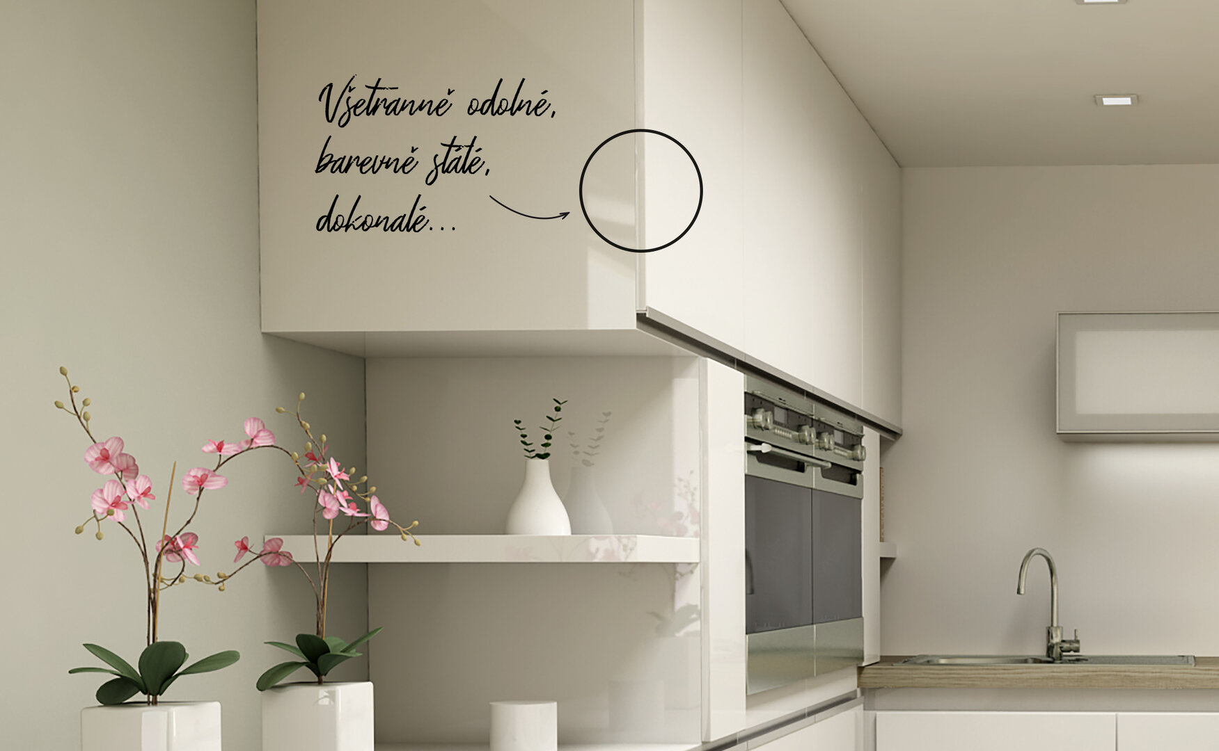 Jako v mnoha dalších oblastech je řešením problémů rozdílné změny barevnosti plochy a hrany dvířek použití nejlepších dostupných materiálů. Kromě estetických kvalit s sebou TOP materiály přinášejí i skvělé užitné vlastnosti, což je našim trvalým cílem.