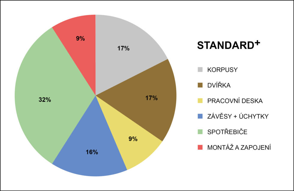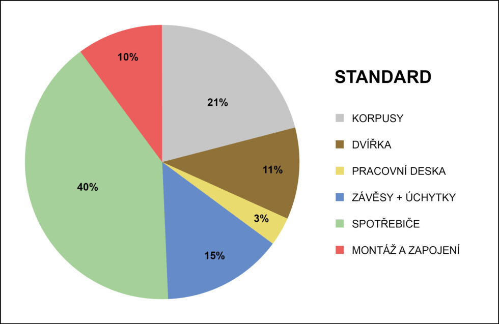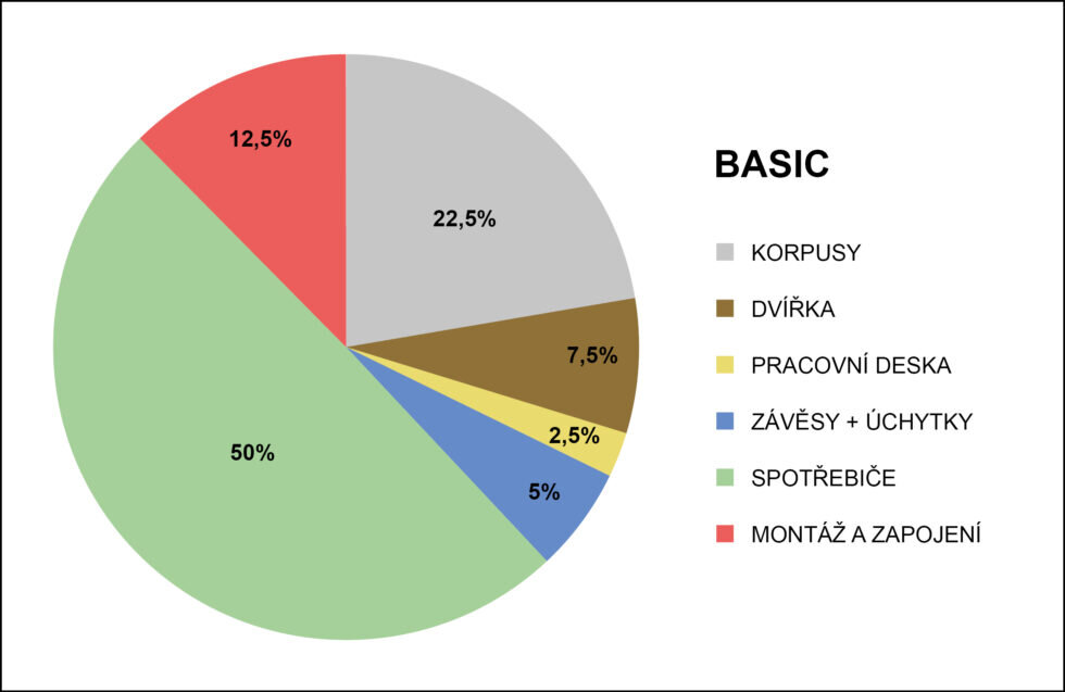 Jaké procento z ceny průměrné kuchyňské linky tvoří korpusy?