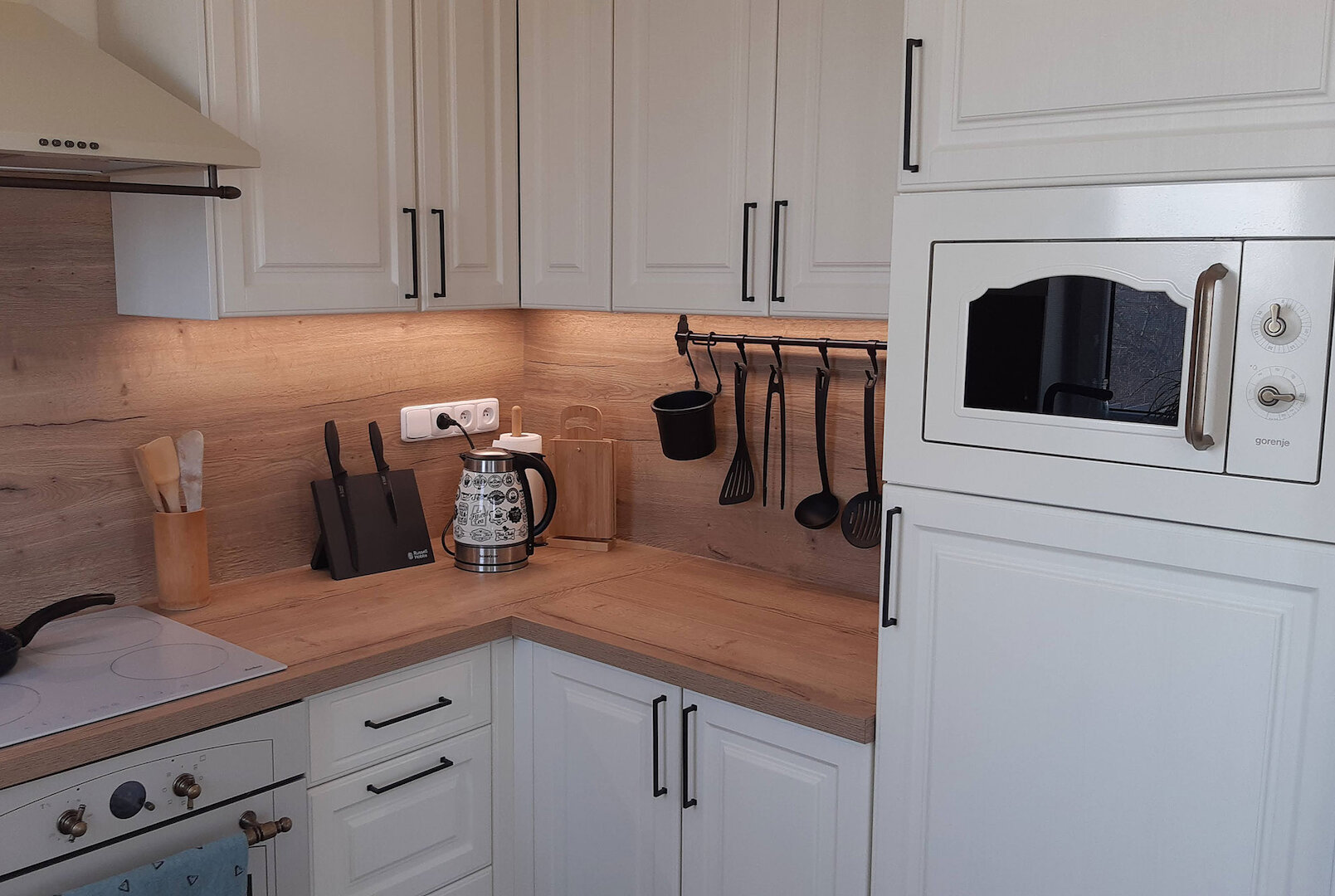 „Za těch pár měsíců používání musíme říci, že jsme spokojeni. Cítíme se v naší kuchyni hezky, z indukce jsme nadšení, pár věcí (skříňky) jsme si vybavili podle sebe a je radost tady nejen vařit, ale dokonce i umývat :) “