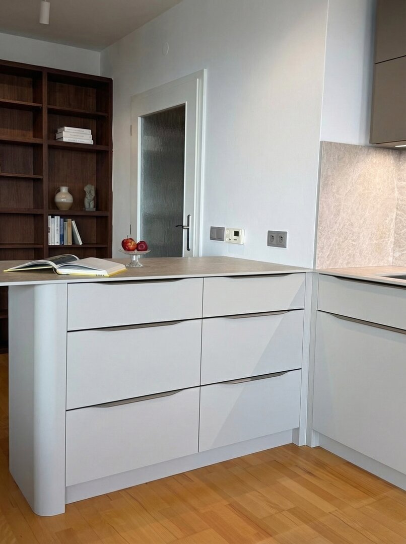 Sterilním a chladným kuchyním odzvonilo. Současné trendy přejí útulnosti, zemitým tónům a povrchům, kterých se budete chtít neustále dotýkat. Skvělým příkladem je tato nádherná realizace moderní kuchyně, která dokazuje, že spojení supermatných povrchů, jemných barevných přechodů a chytrých řešení vytváří dokonale harmonický domov.