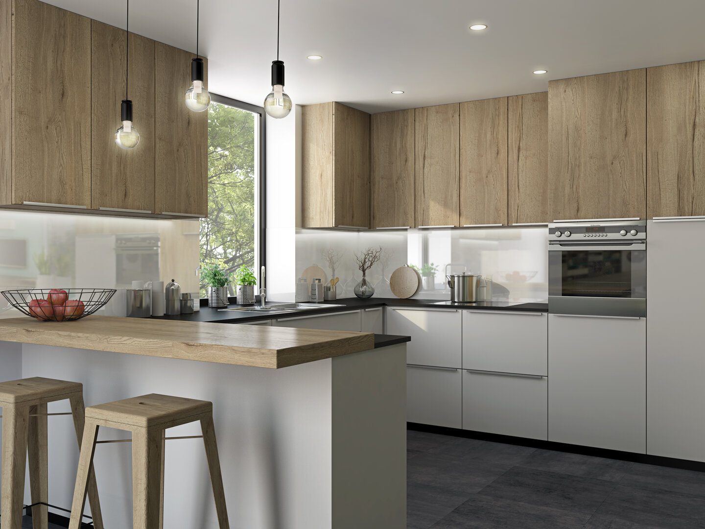 A malá inspirace na závěr: podívejte se, jak to spolu sluší dubu halifax a perleti ULTRA, dekorům dvířek, která už nyní můžete pořídit levněji, než dříve…