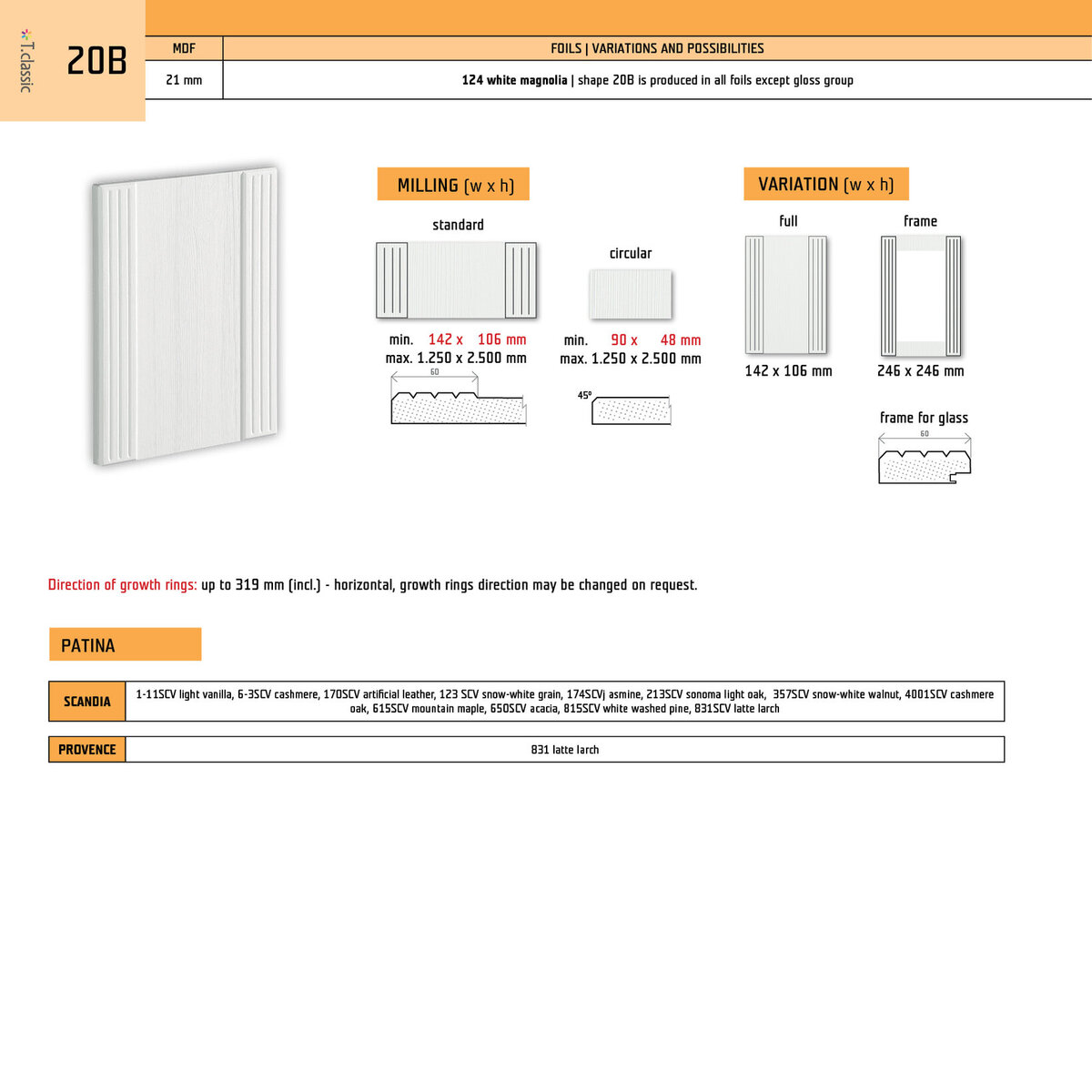 Patina Scandia can be applied to these shapes: 15, 16, 20, 20B, 21, 21B, 22, 22B, 23, 23B, 24, 24B, 25, 25B, 31, 31D, 32, 32C, 36, 36L, 37, 49, 50, 51, 52, 53, 57 a 58.